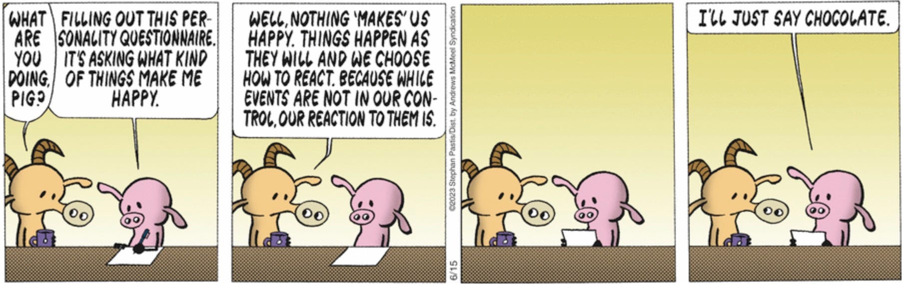 7 - Here’s a significant critical thinking question to ponder: is happiness caused by something external, or is it internal?